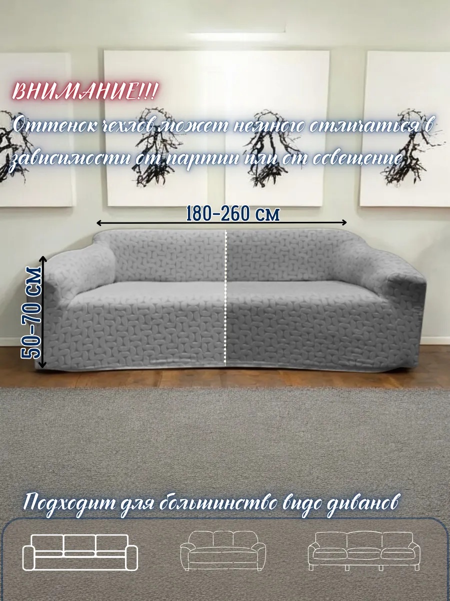 • чехол на 3-х местный диван - длина посадочного места без учета подлокотников - от 150 см до 260 см.