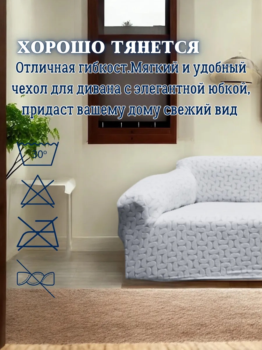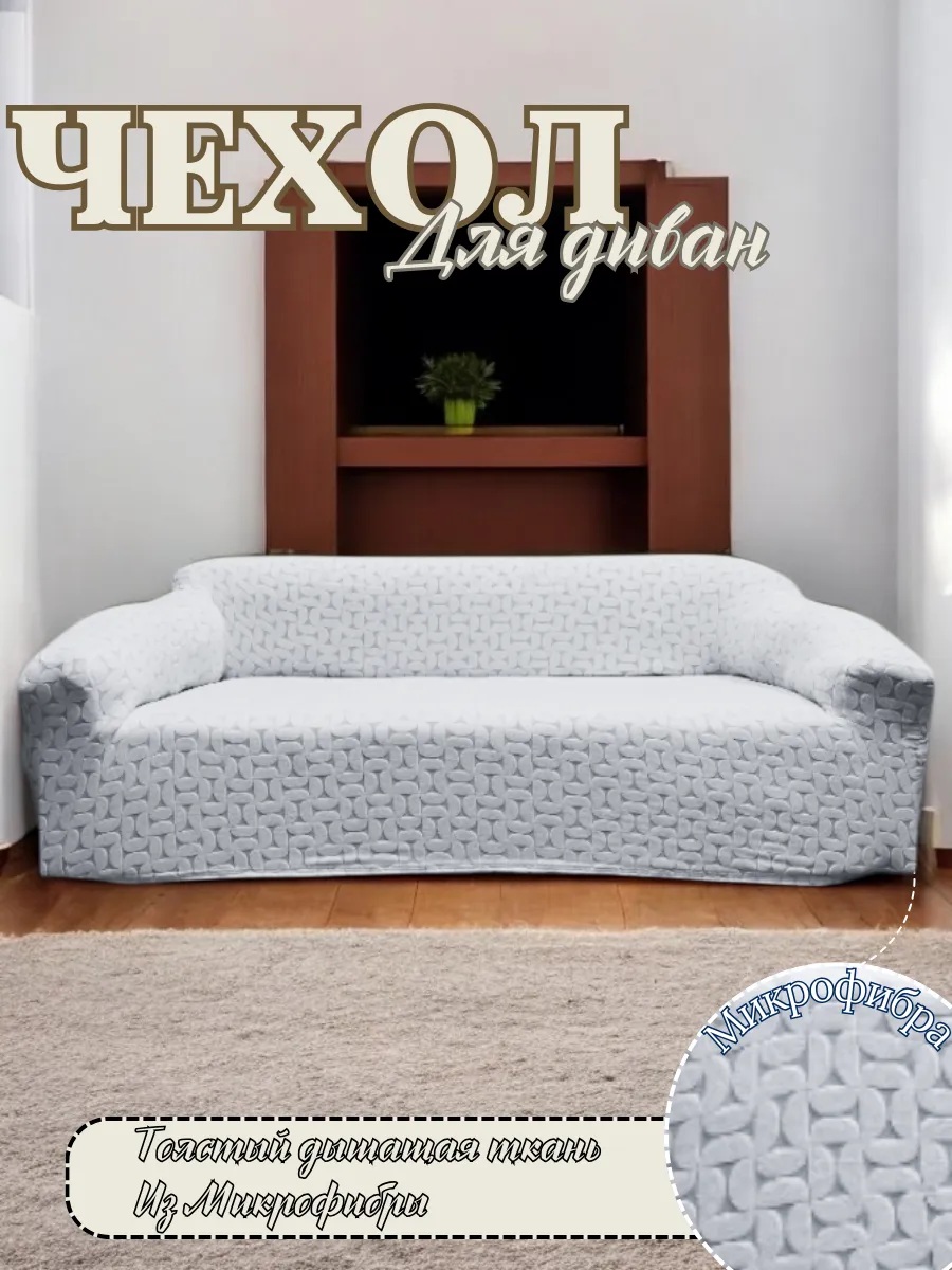Чехол на 3-местный диван, без оборки, жаккард, серый, бело-серый