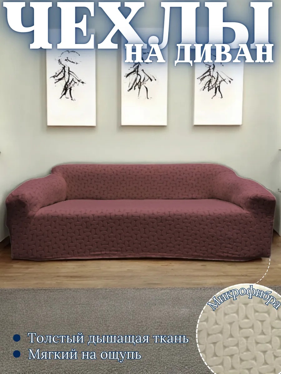 Чехол на 3-местный диван, без оборки, жаккард, шоколадный
