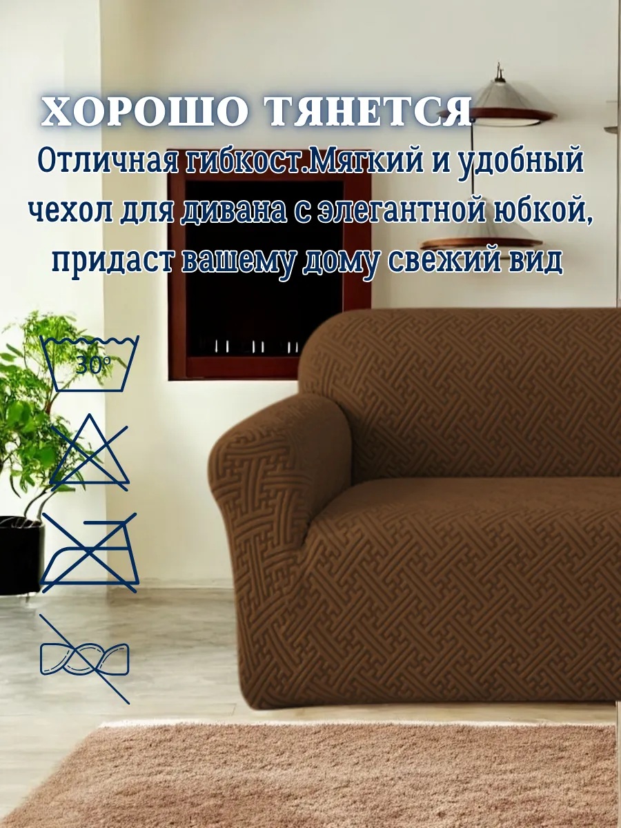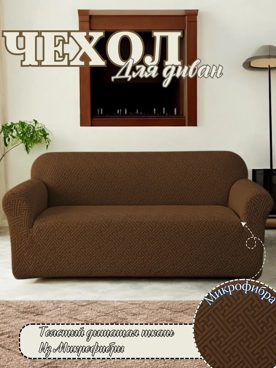 Чехол на 3-местный диван, без оборки, жаккард, шоколадный