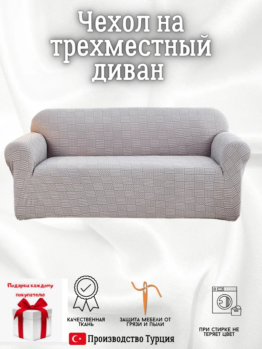 Чехол на 3-местный диван, без оборки, жаккард, средне-серый
