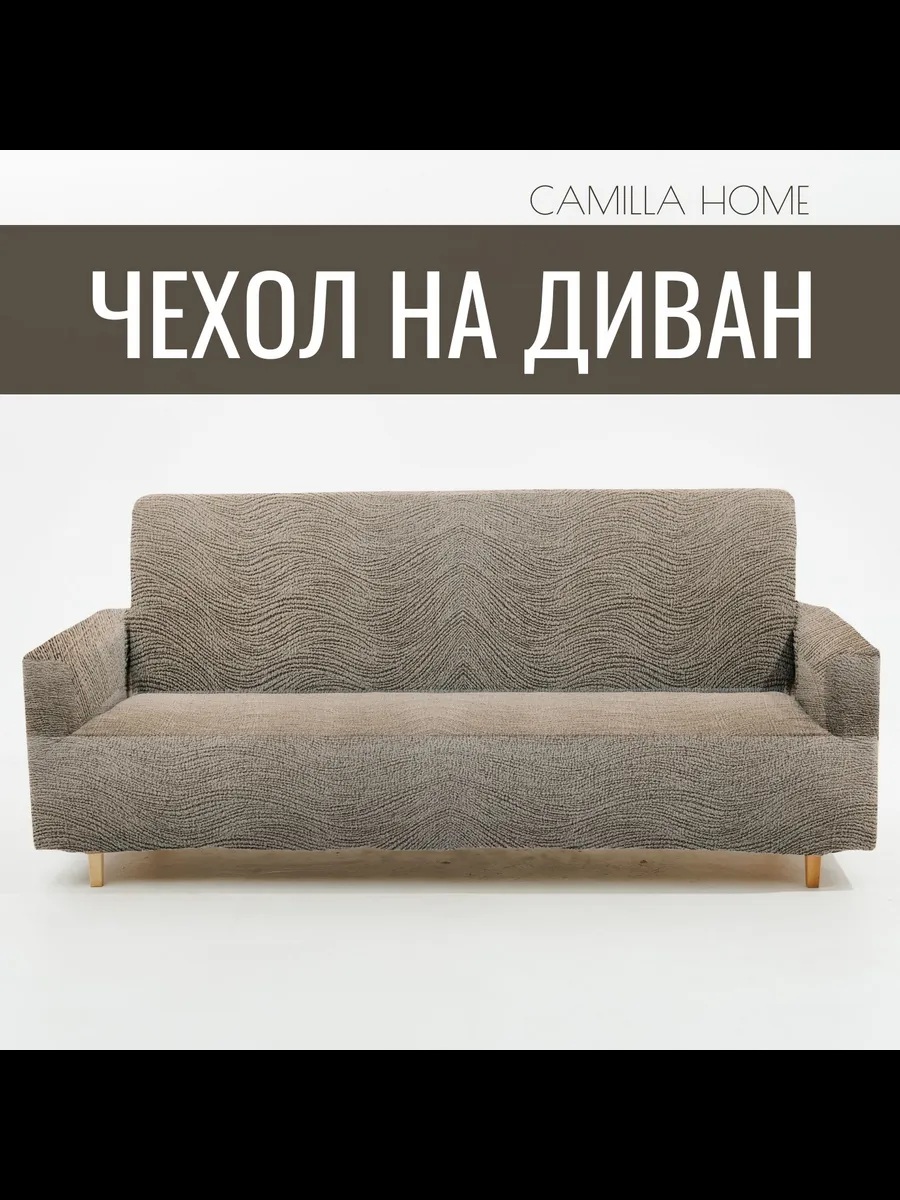 Чехол на 3-местный диван, без оборки, жаккард, светло-бежевый
