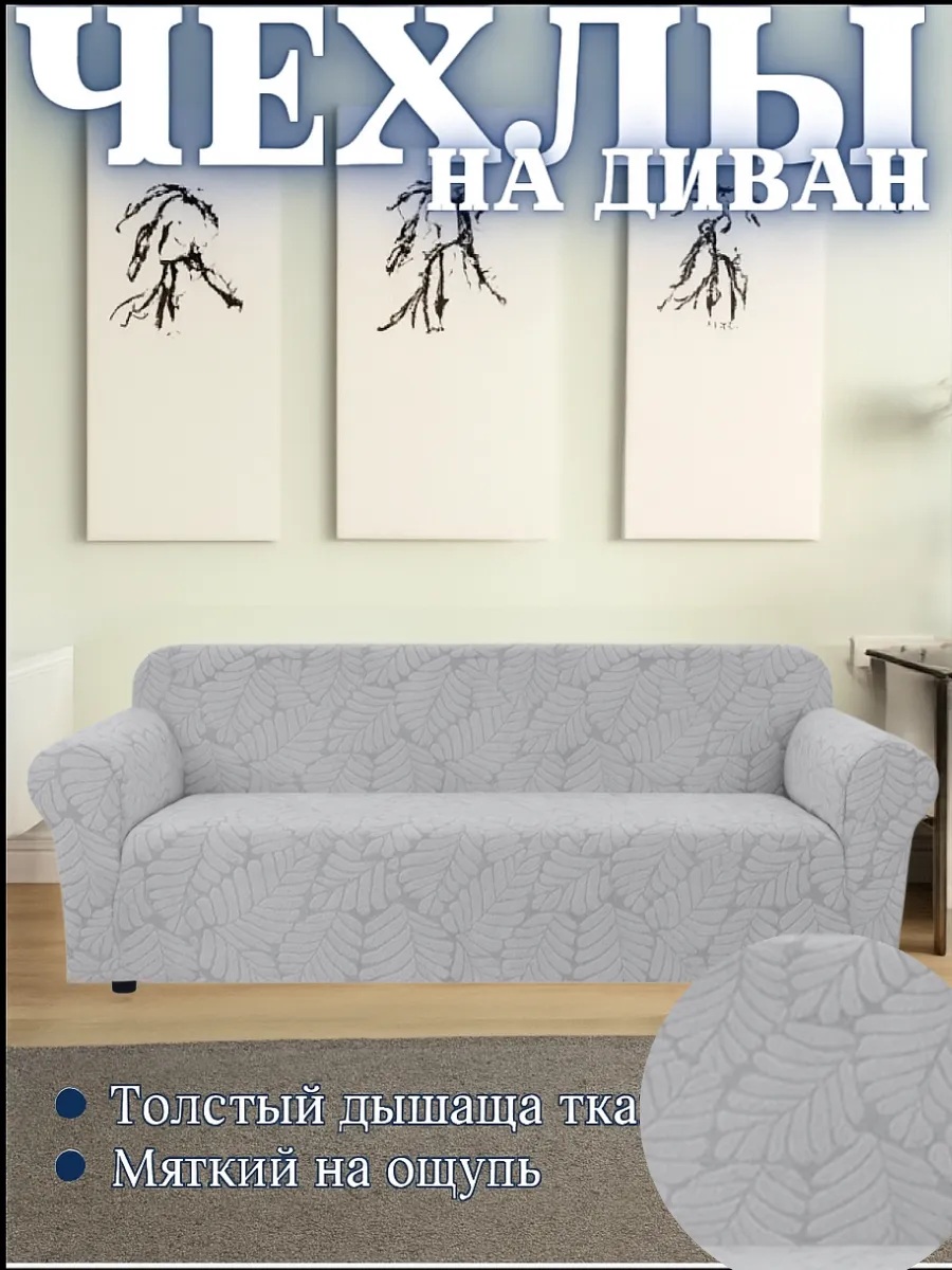 Чехол на 3-местный диван, без оборки, жаккард, светло-серый