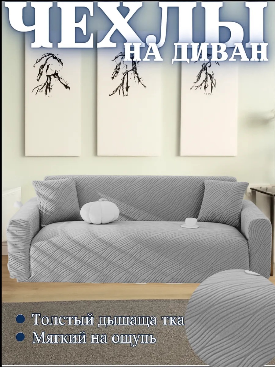 Чехол на 3-местный диван, без оборки, жаккард, светло-серый