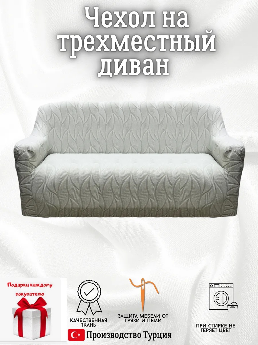 Чехол на 3-местный диван, без оборки, жаккард, светло-серый