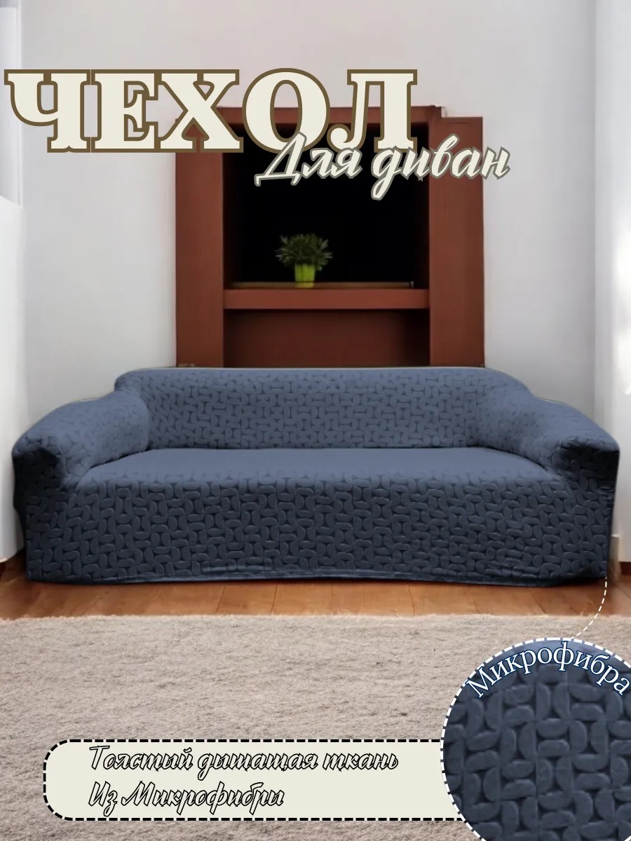 Чехол на 3-местный диван, без оборки, жаккард, темно-серый