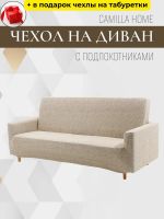 Чехол на 3-местный диван, без оборки, жаккард, ванильный