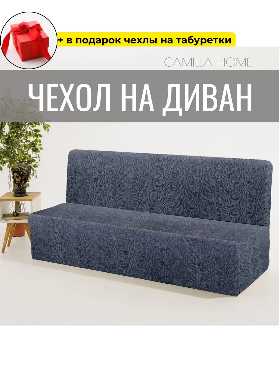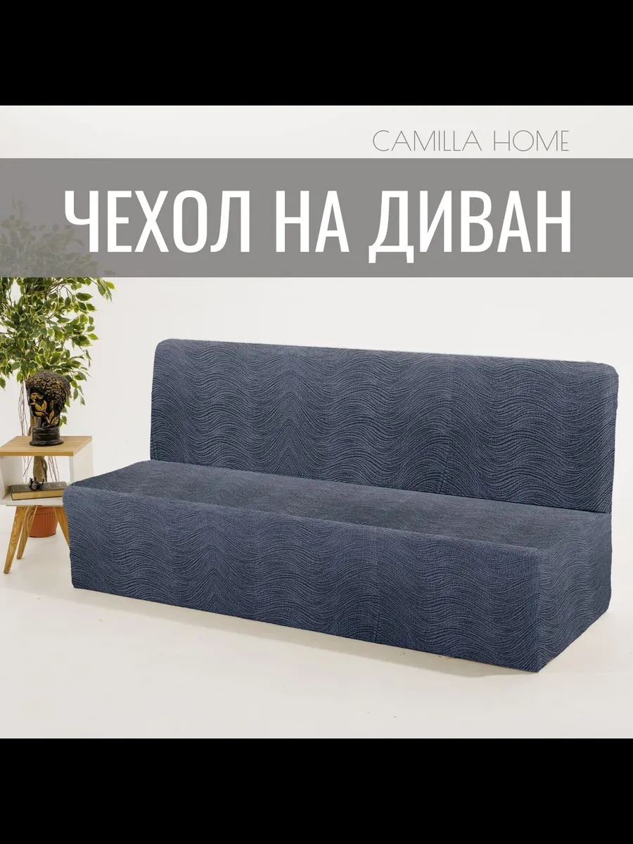 Чехол на 3-местный диван без подлокотников и оборки, жаккард, графит