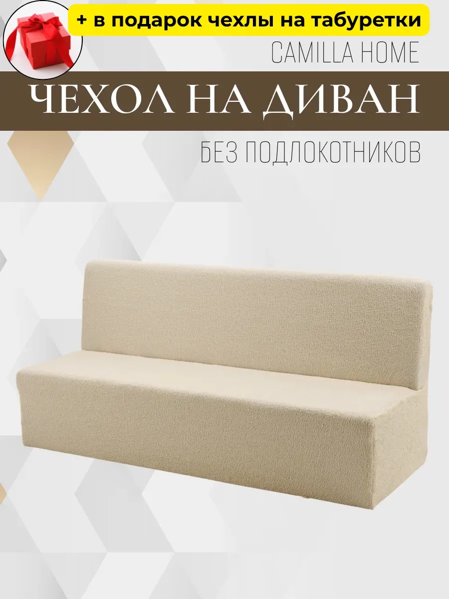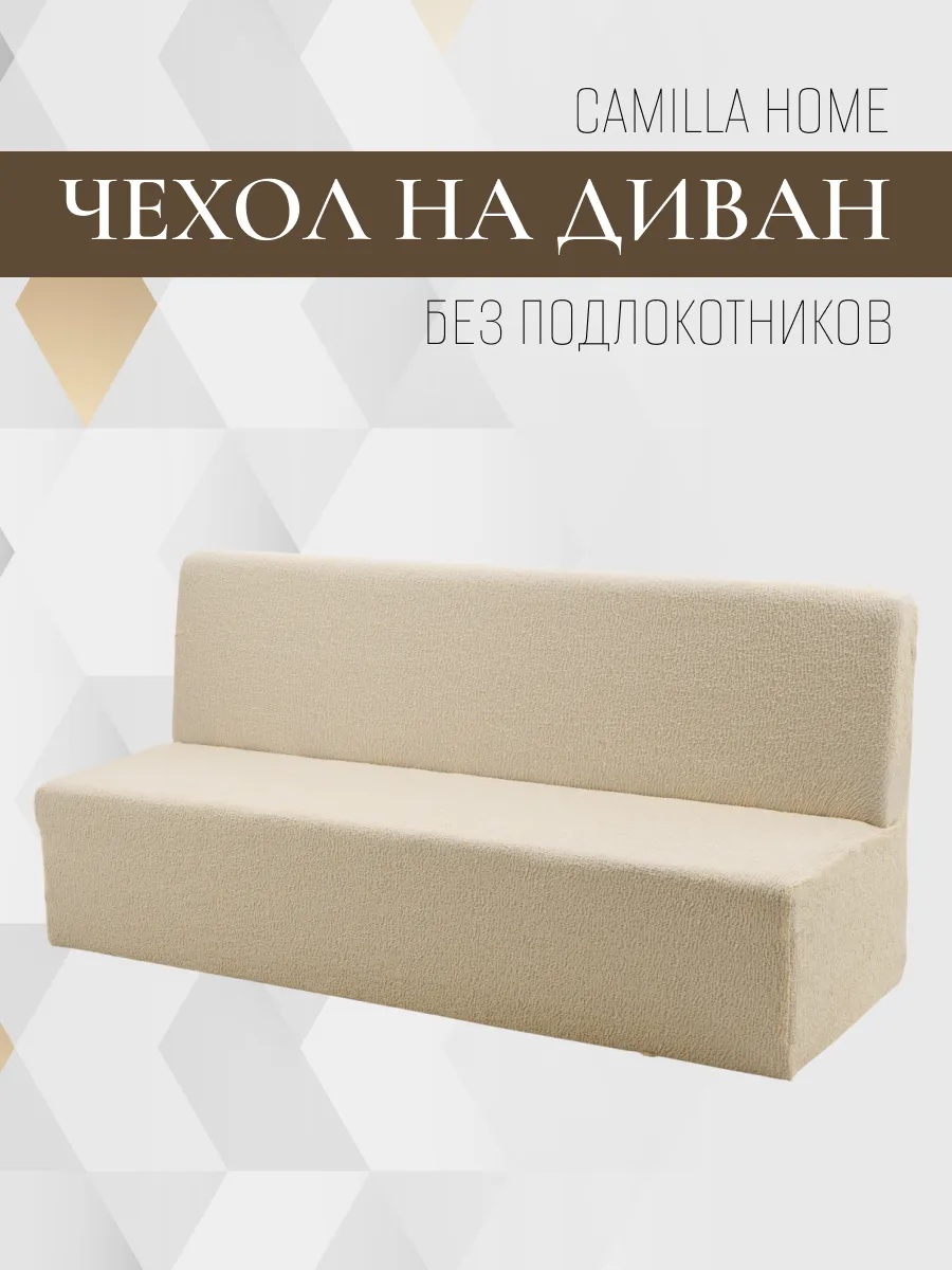 Чехол на 3-местный диван без подлокотников и оборки, жаккард, кремовый