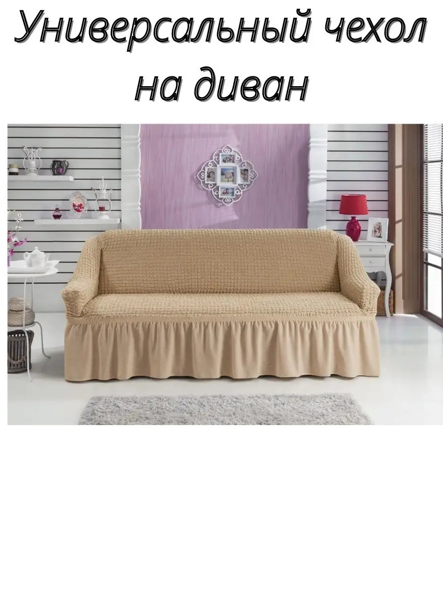 Чехол на 3-местный диван, с оборкой, стрейч, молочный