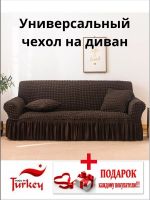 Чехол на 3-местный диван, с оборкой, стрейч, шоколадно-коричневый