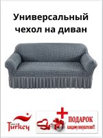 Чехол на 3-местный диван, с оборкой, стрейч, средне-серый