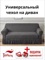 Чехол на 3-местный диван, с оборкой, стрейч, темно-серый
