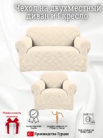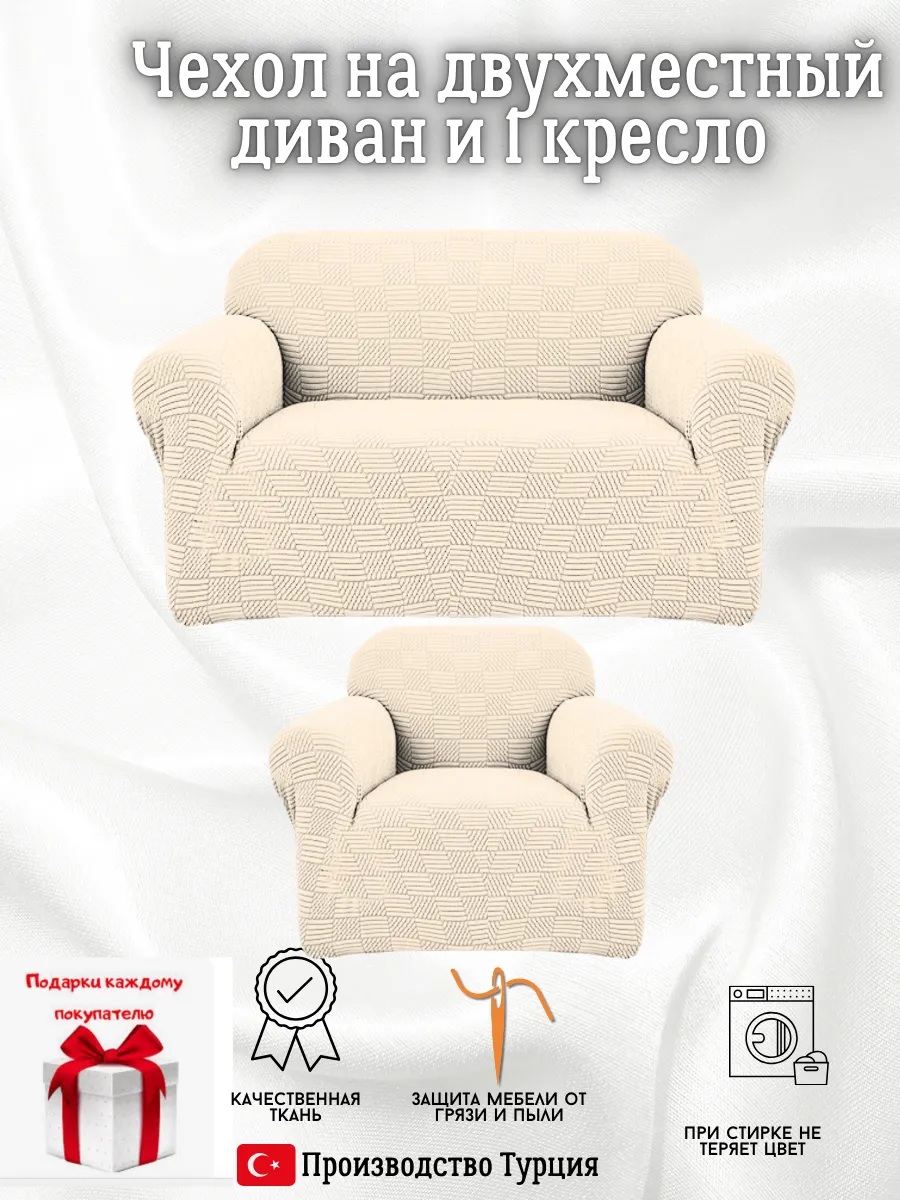 Чехол на диван 2-местный и кресло без оборки, жаккард, кремовый