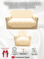 Чехол на диван 2-местный и кресло без оборки, жаккард, кремовый