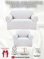 Чехол на диван 2-местный и кресло без оборки, жаккард, светло-серый
