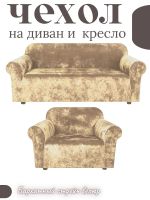 Чехол на диван 3-местный и кресло без оборки, велюр, бежевый