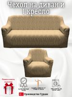 Чехол на диван 3-местный и кресло без оборки, жаккард, кофе