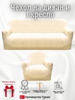 Чехол на диван 3-местный и кресло без оборки, жаккард, кремовый