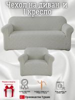 Чехол на диван 3-местный и кресло без оборки, жаккард, серый