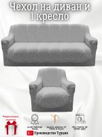 Чехол на диван 3-местный и кресло без оборки, жаккард, средне-серый