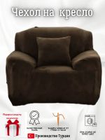 Чехол на кресло без оборки плюш (мех) шоколадный