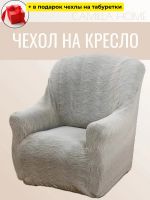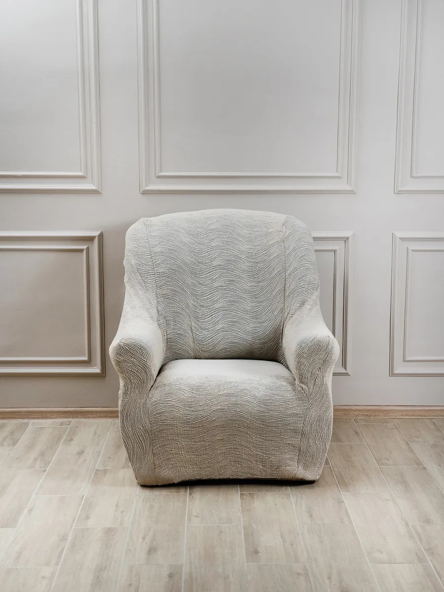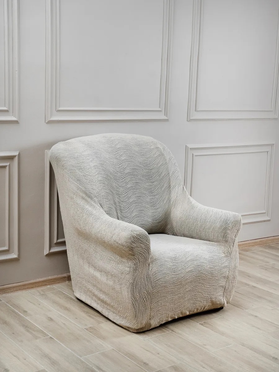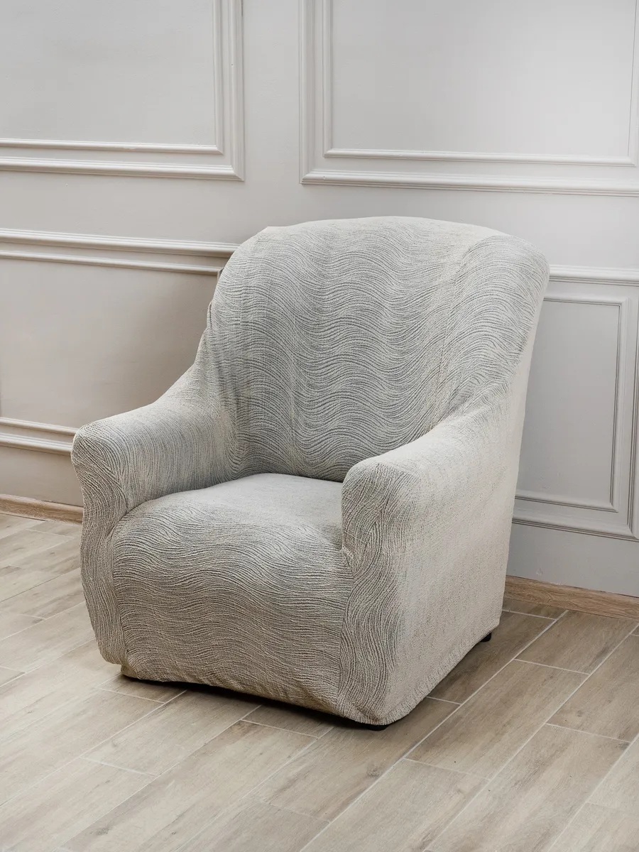 Чехол на кресло без оборки, жаккард, светло-серый