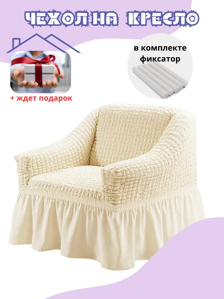 Чехол на кресло с оборкой, стрейч, кремовый