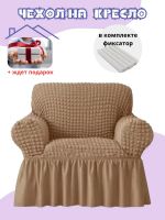 Чехол на кресло с оборкой, стрейч, медовый