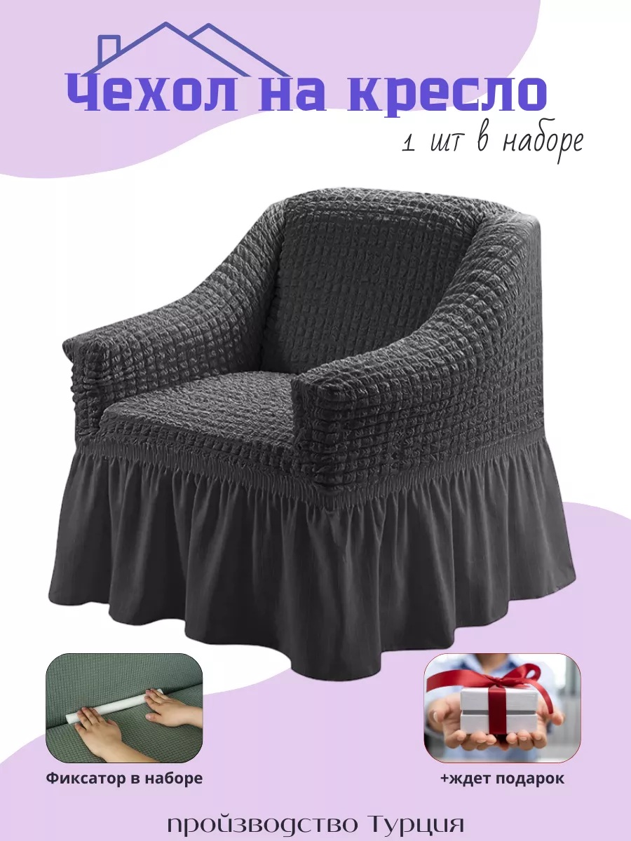 Чехол на кресло с оборкой, стрейч, мокрый асфальт