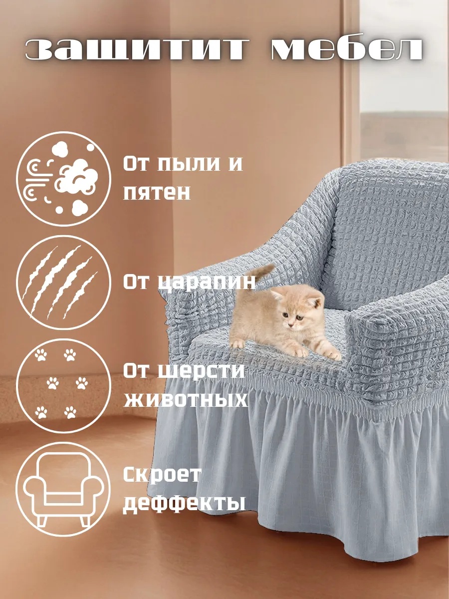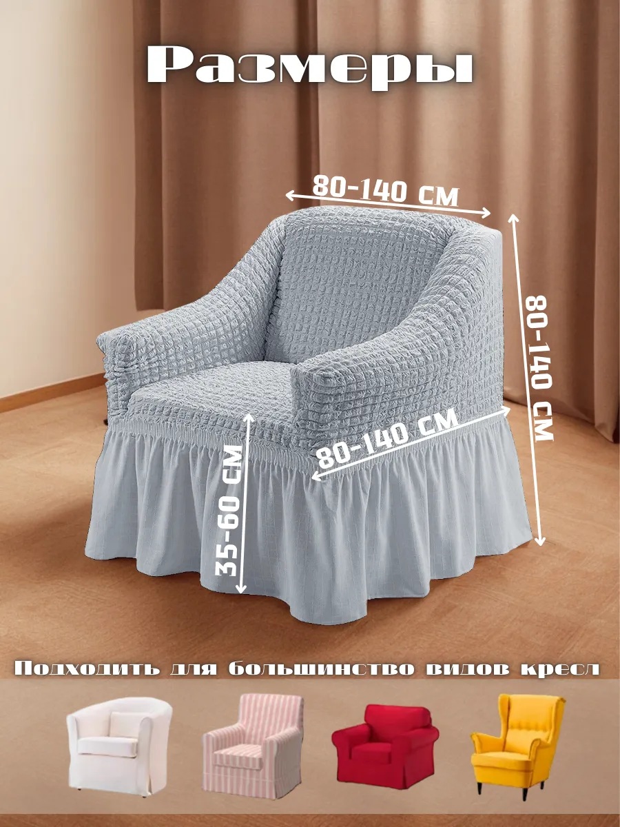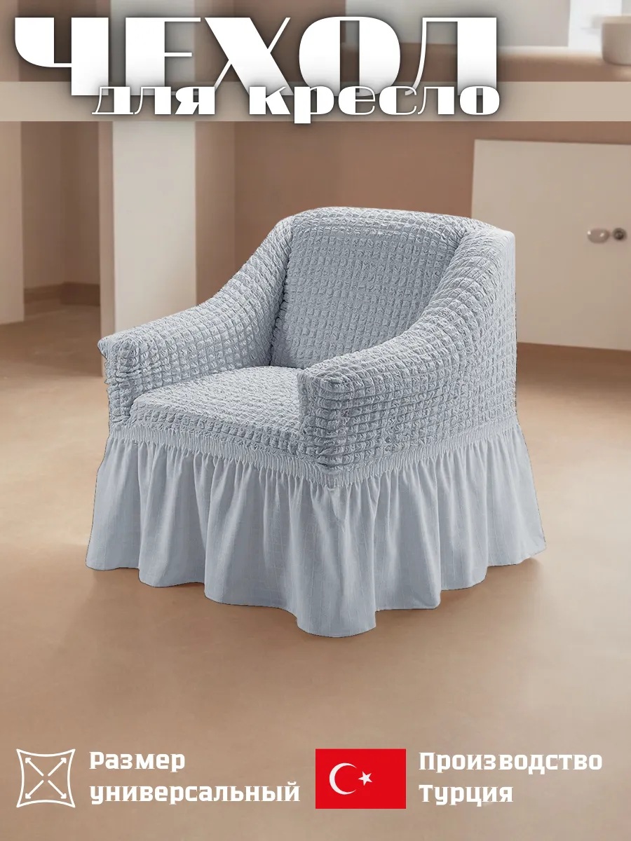 Чехол на кресло с оборкой, стрейч, платина, серый, серебристо-серый