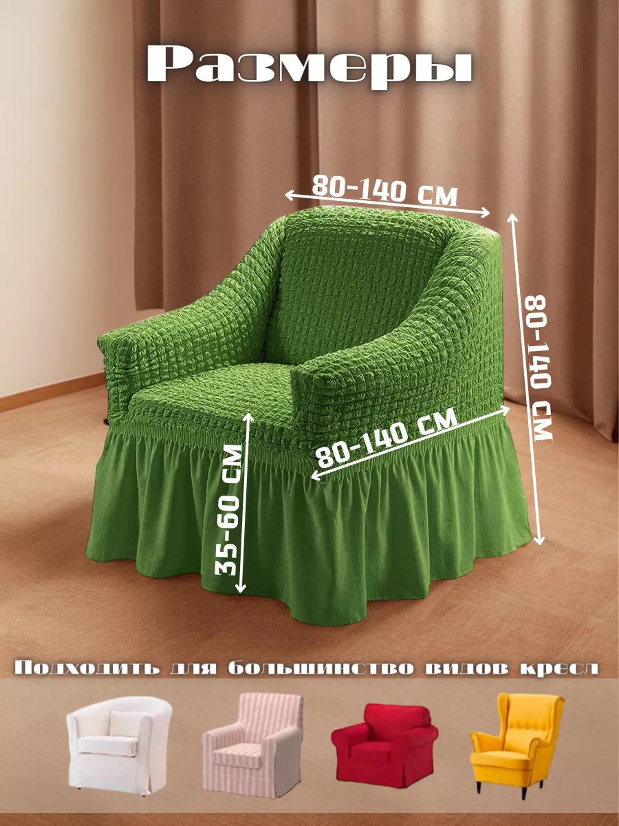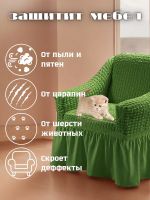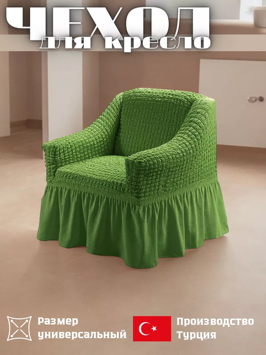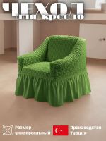 Чехол на кресло с оборкой, стрейч, зеленый