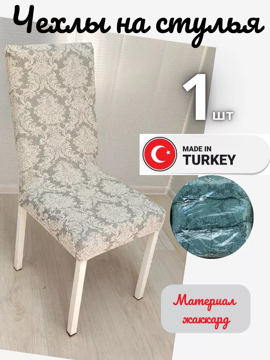 Чехол на стул, без оборки, жаккард, белый мрамор