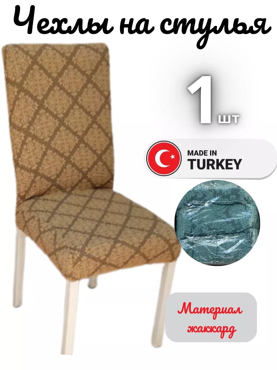 Чехол на стул, без оборки, жаккард, коричневый