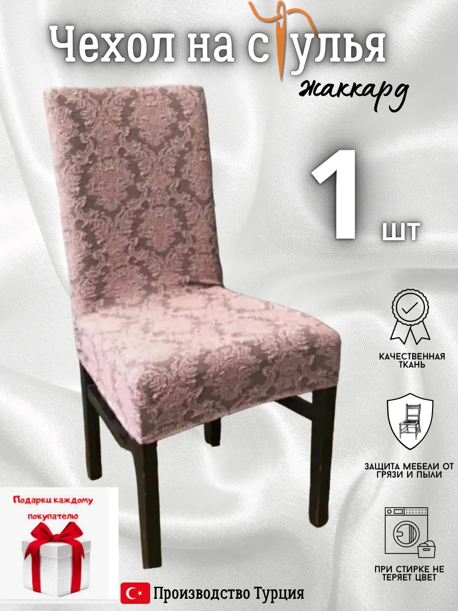 Чехол на стул, без оборки, жаккард, розовый