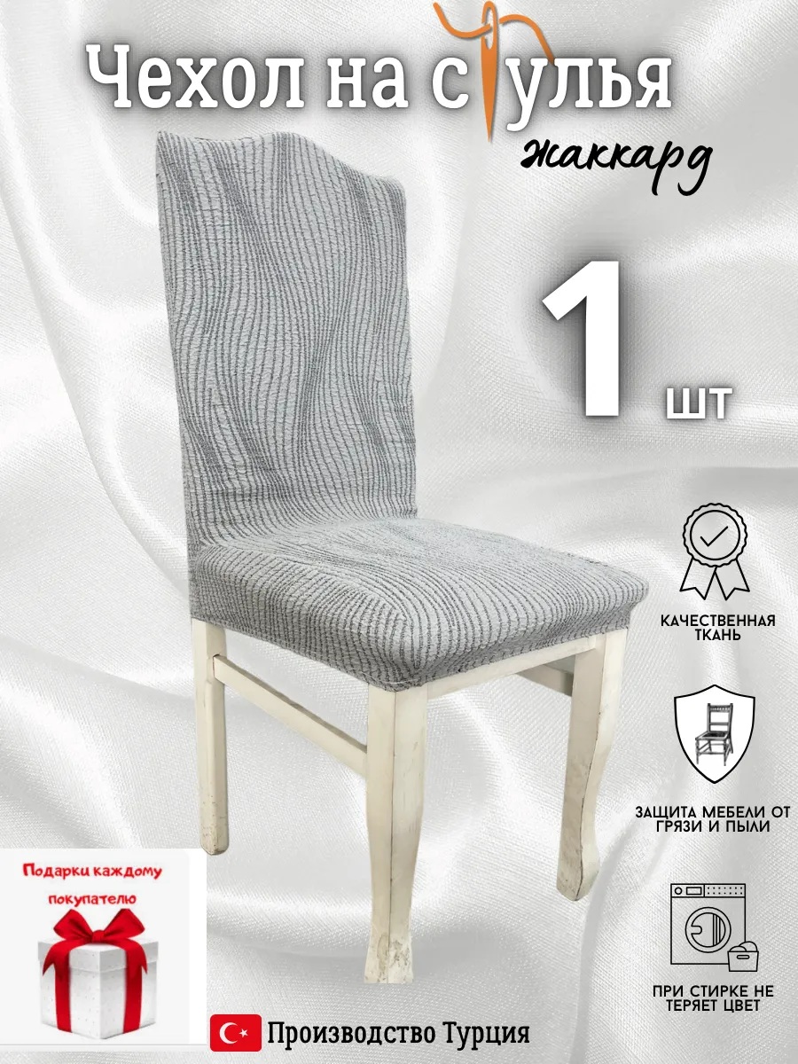 Чехол на стул, без оборки, жаккард, серый