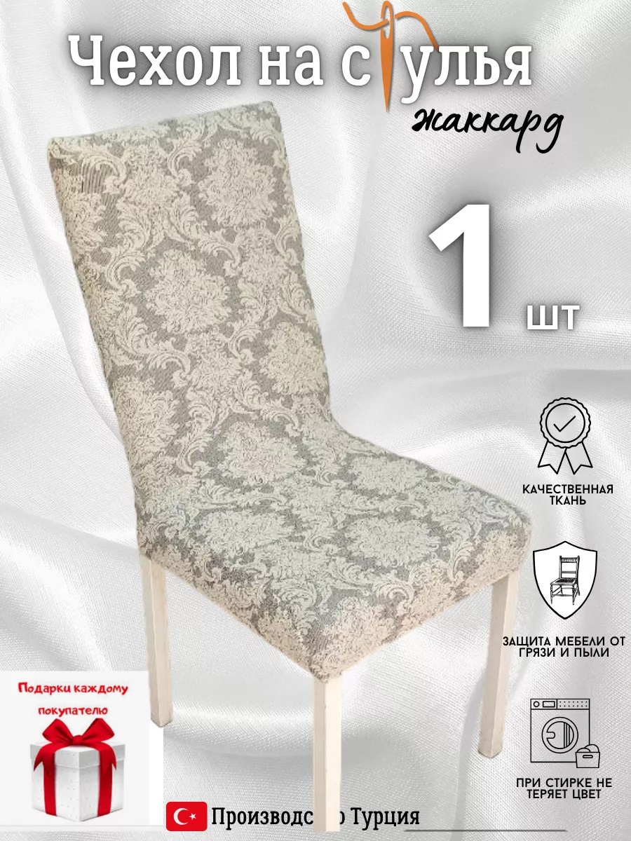 Чехол на стул, без оборки, жаккард, светло-серый