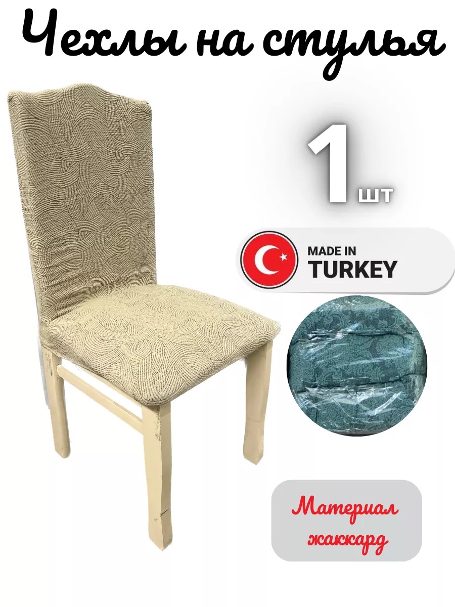 Чехол на стул, без оборки, жаккард, светло-желтый