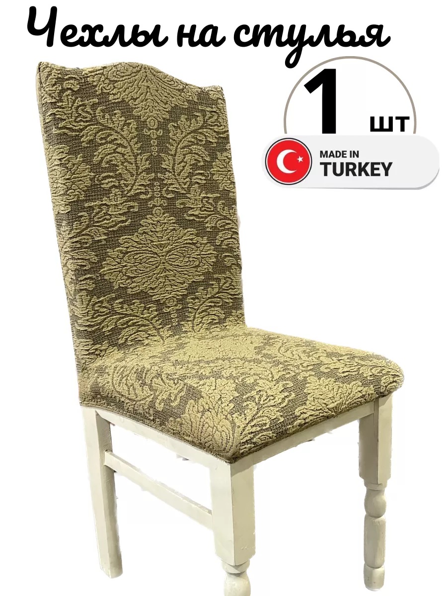 Чехол на стул, без оборки, жаккард, светло-желтый