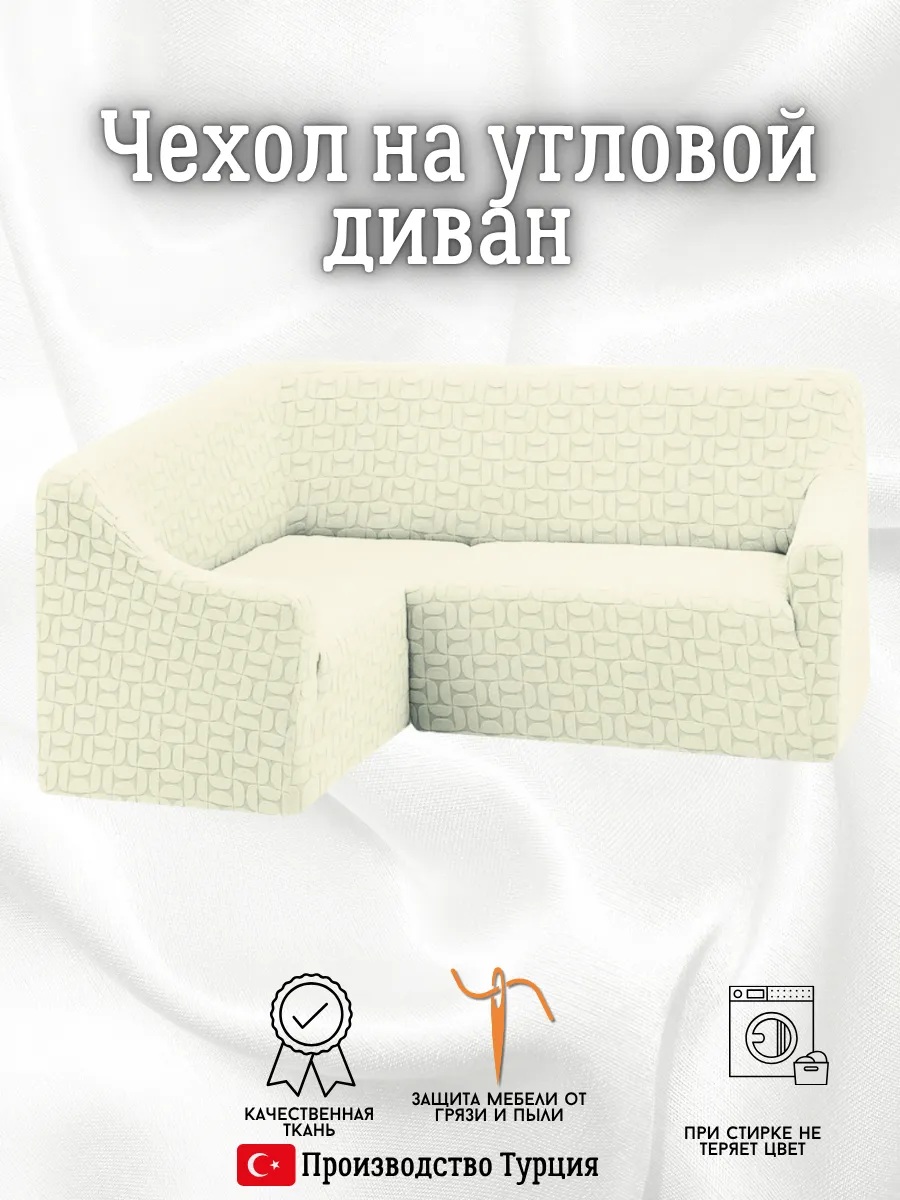 Чехол на угловой диван без оборки, жаккард, кремовый