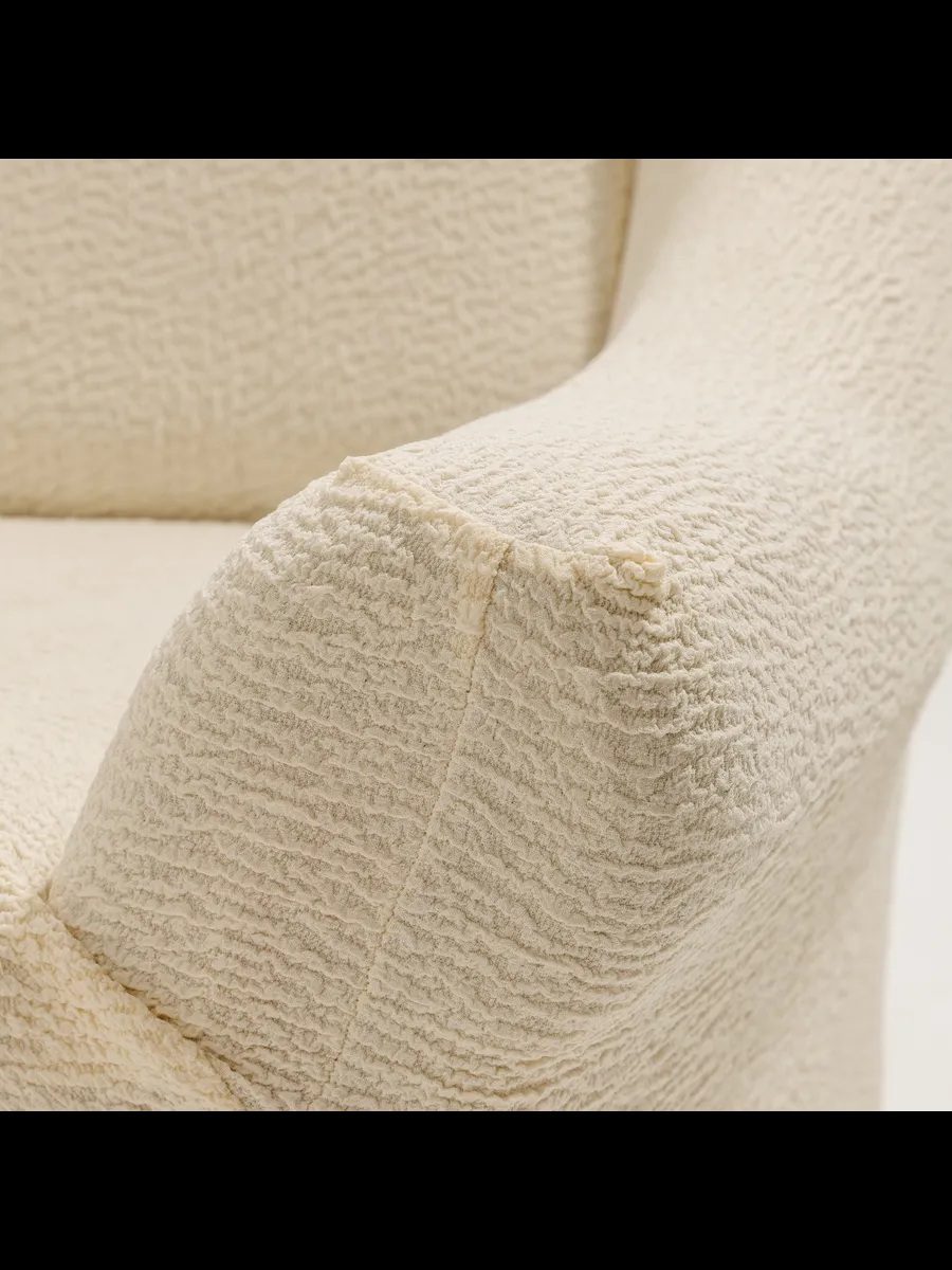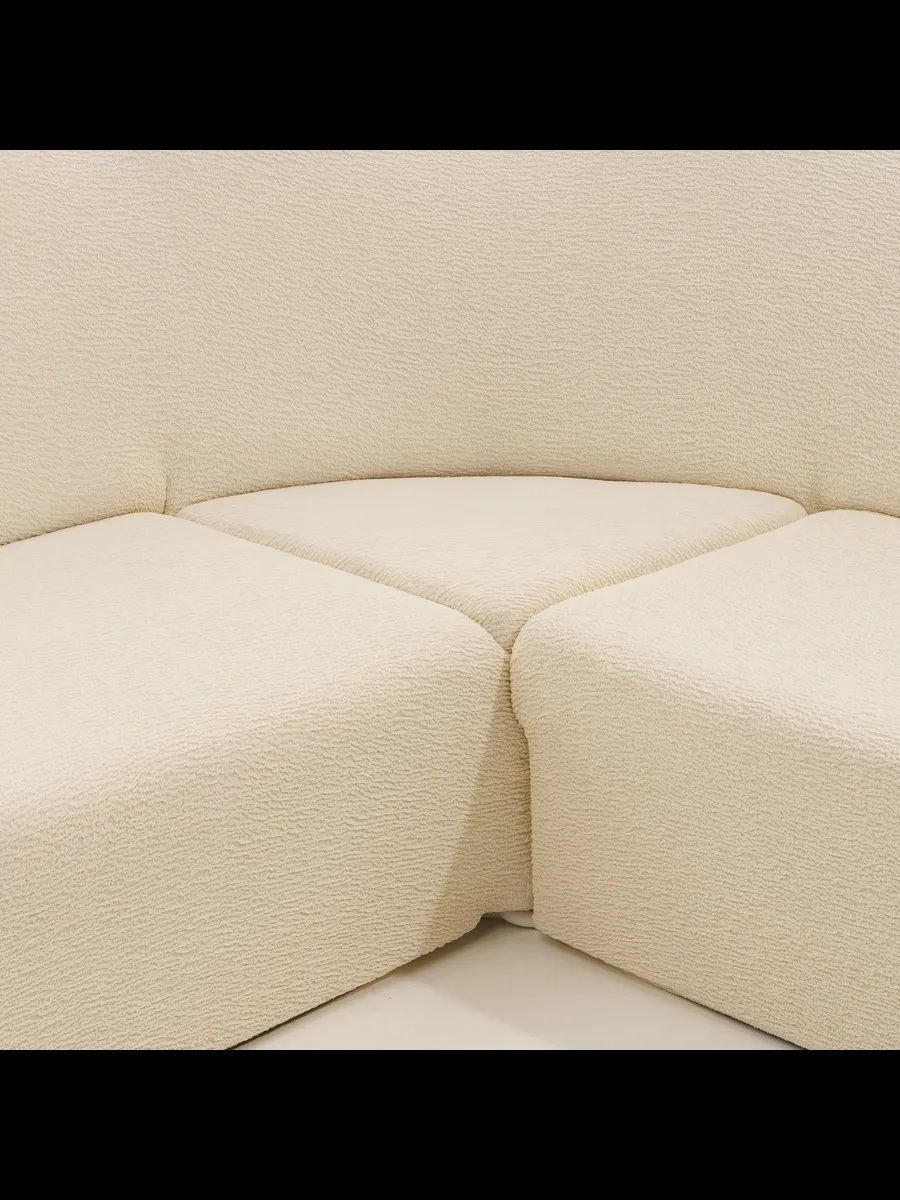 Чехол на угловой диван без оборки, жаккард, кремовый