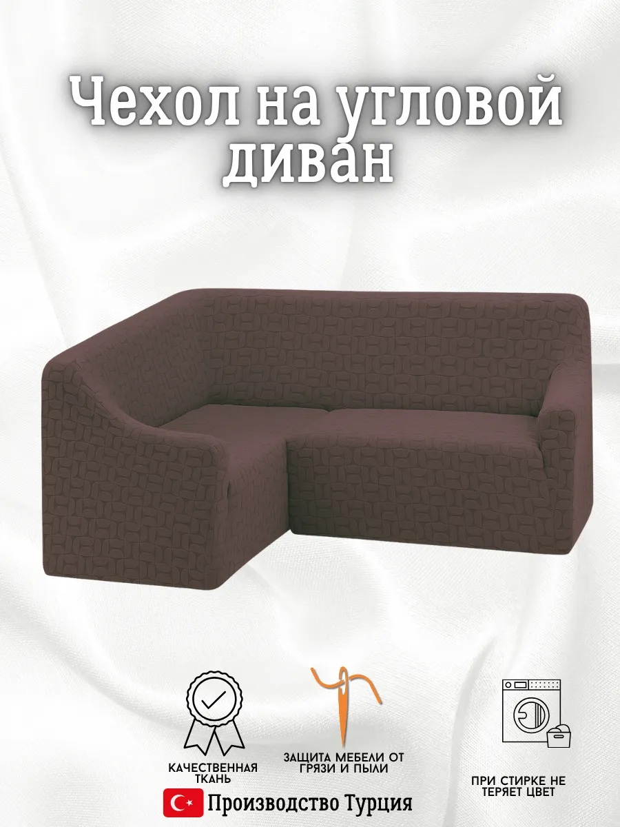 Чехол на угловой диван без оборки, жаккард, шоколадный