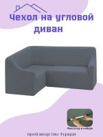 Чехол на угловой диван без оборки, жаккард, темно-серый