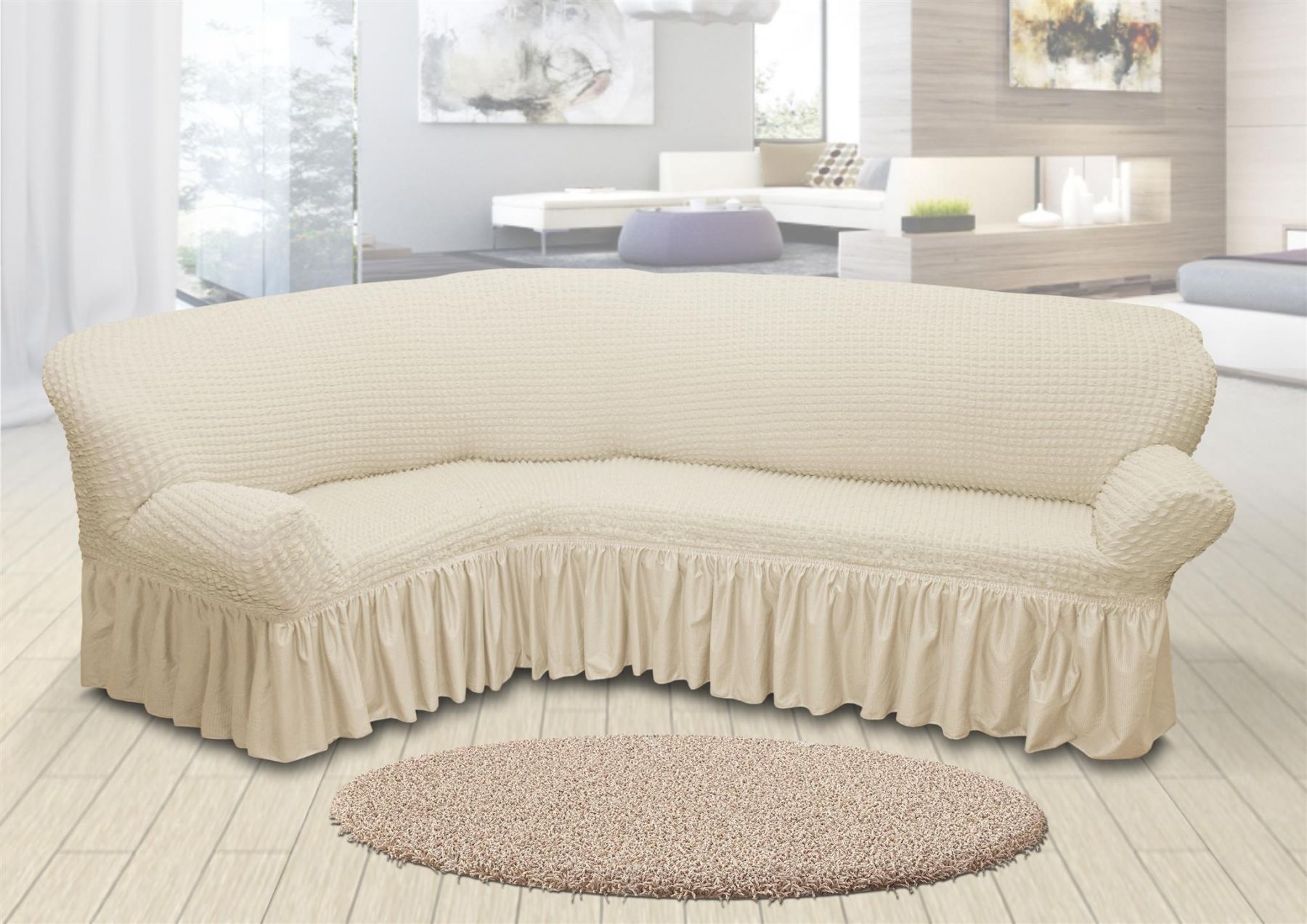 Элегантность в каждой детали: чехол на угловой диван с оборкой, молочный