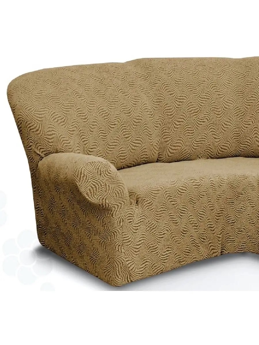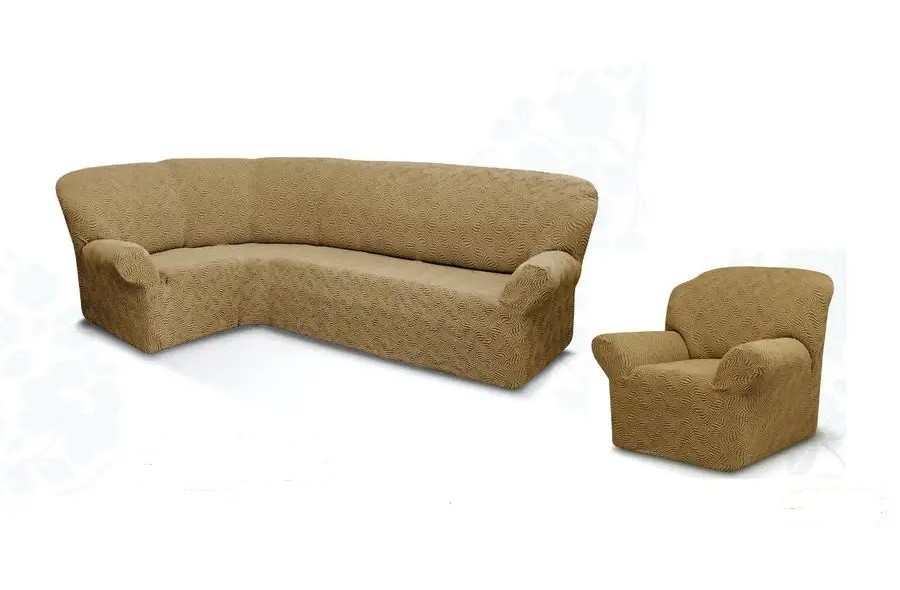 Чехол на угловой диван и кресло без оборки,Жаккард,кофе с молоком