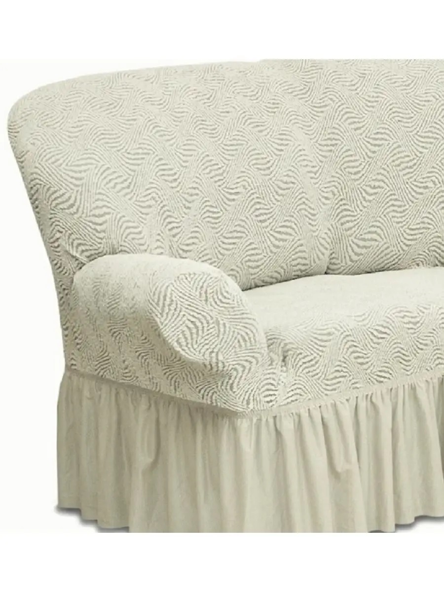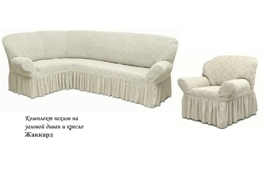 Чехол на угловой диван и кресло с оборкой Жаккард,ванильный