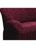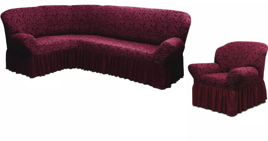 Чехол на угловой диван и кресло с оборкой Жаккард,Бордовый