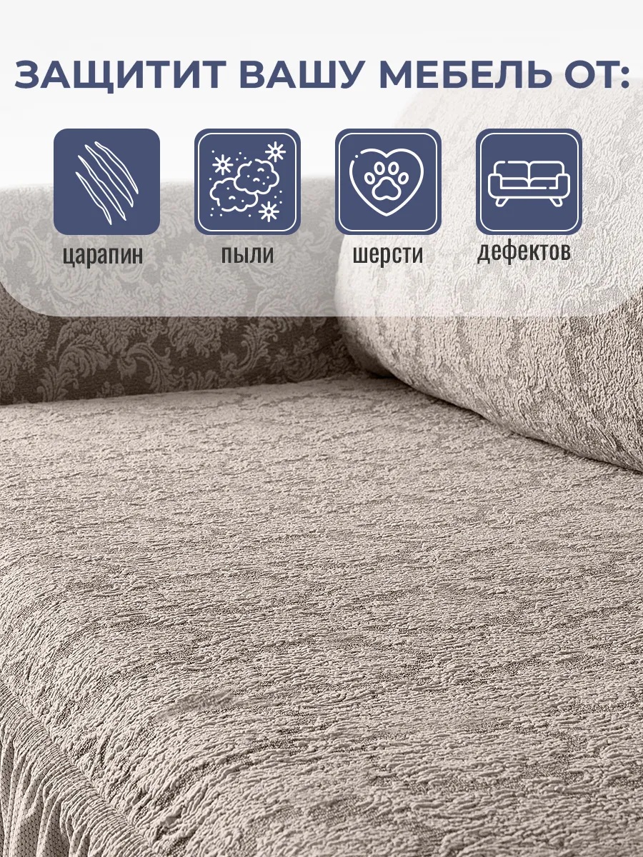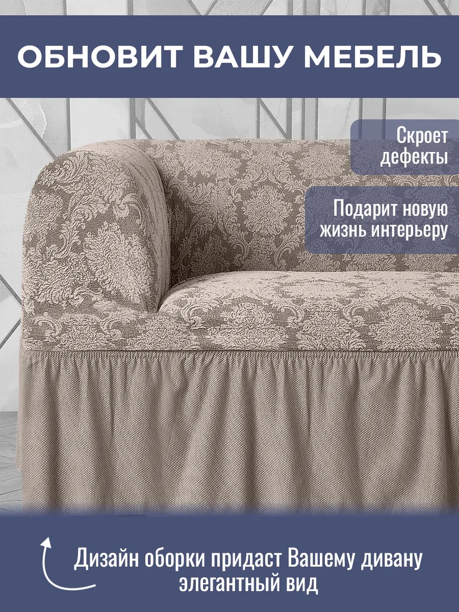 Чехол на угловой диван с оборкой Жаккард , кремовый
