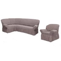 Чехол на угловой диван и кресло с оборкой Жаккард,Капучино