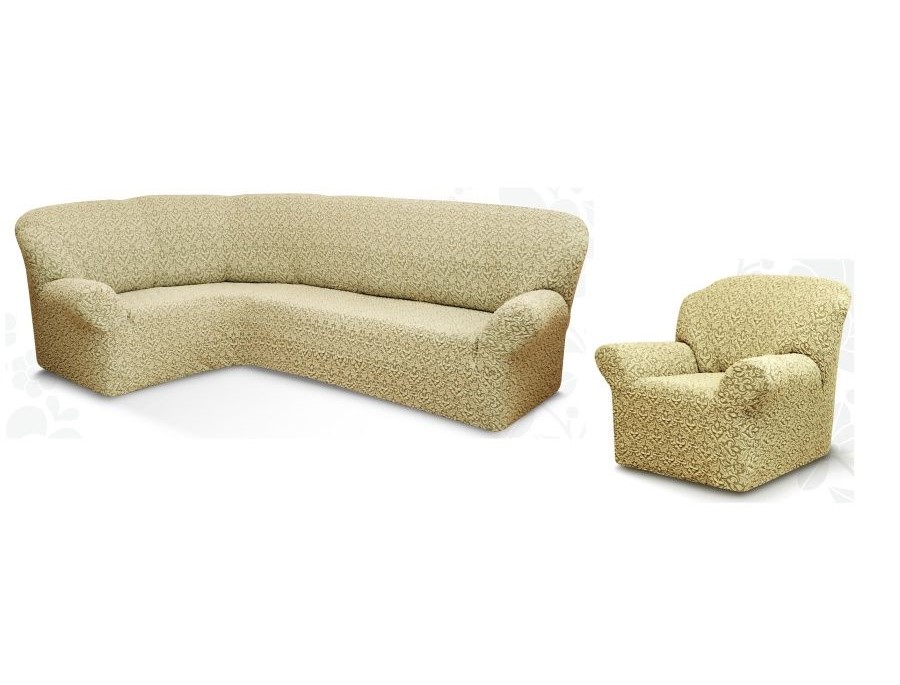 Чехол на угловой диван и кресло с без оборки,Жаккард,Бежевый